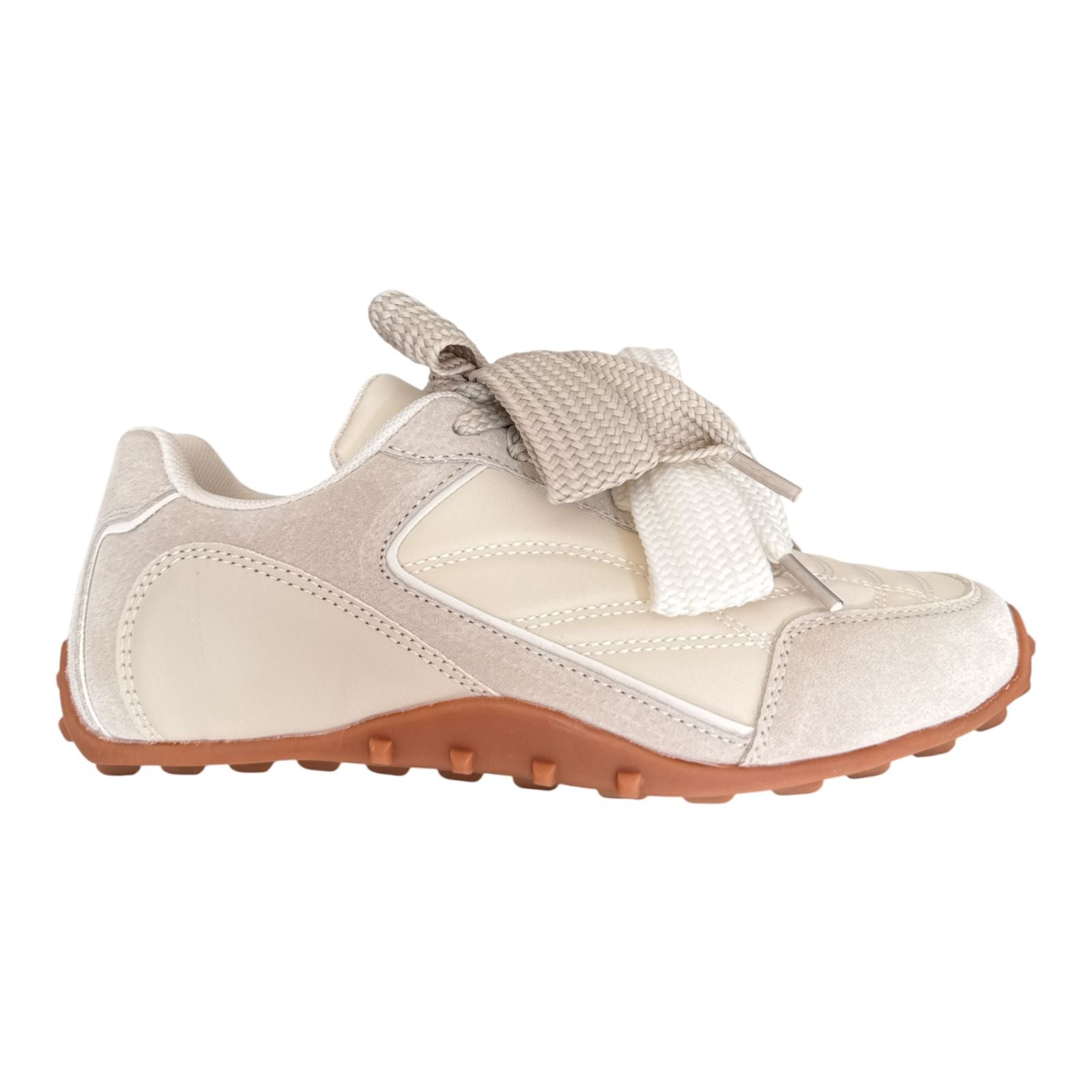 Este sneaker en tonos neutros con suela tipo trail y cintas gruesas entrelazadas aporta un toque original a tus pasos diarios. Combina la funcionalidad de un calzado todo terreno con el diseño trendy que transforma cualquier outfit casual en un look con personalidad.